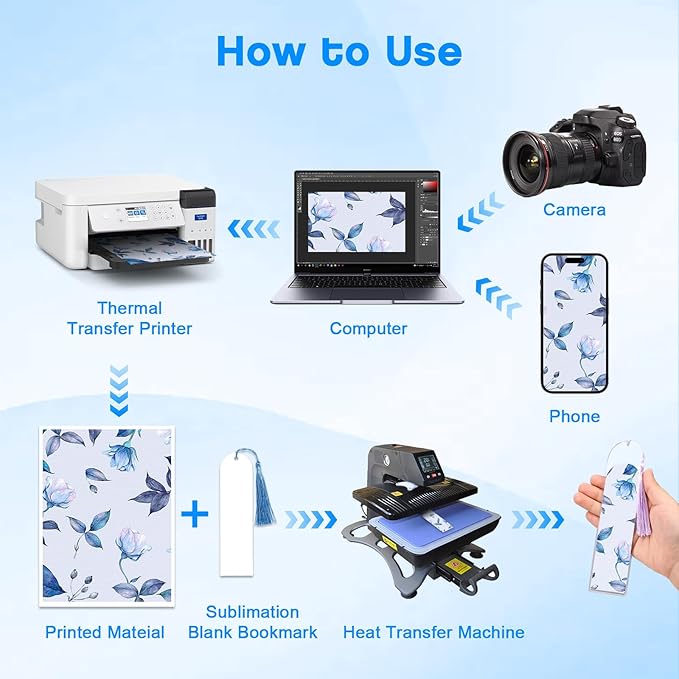 - 📔Reading gift - These sublimation decorative bookmarks with tassels are a creative stationery product/craft. You can DIY it yourself or use a transfer machine to print personalized patterns, inspirational sentences, etc. on blank bookmarks and give it to your friends, classmates, teachers, families, and book lovers on birthdays, the beginning of the school year, and graduation season.