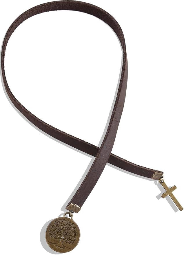 - VINTAGE ANTIQUE - These bookmarks are made from genuine leather and feature a bronze saint pendant, providing a textured, ancient, and mysterious feel while ensuring durability. The other end has a small metal cross pendant. The dark brown leather combined with the vintage pendants creates a delicate and beautiful design.