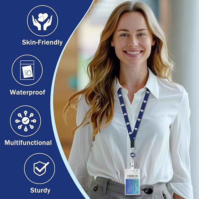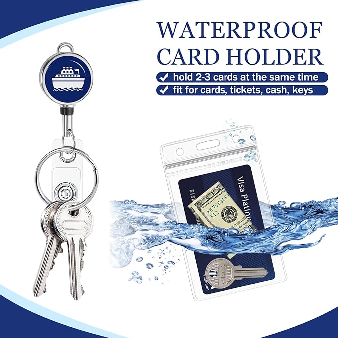 - Novelty Design: This necklace ID badge lanyard and retractable badge reel features a captivating design inspired by the unique patterns of blue royal Cruise Ship. The elegant and vibrant aesthetic of the cruise ship pattern adds a touch of sophistication and nautical charm to the lanyard, making it a stylish and functional accessory for carrying ID badges. Package Included: ID lanyard retractable reel x2, thickened waterproof ID holders x2