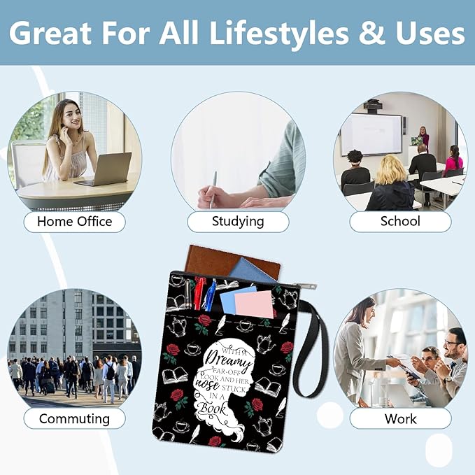 CRASPIRE Human Book Sleeve Rose Book Protector Black Book Covers for Paperbacks Washable Fabric Cloth Book Cover with Zipper and Extra Sleeve Pocket for Book Lovers Classmate Gifts