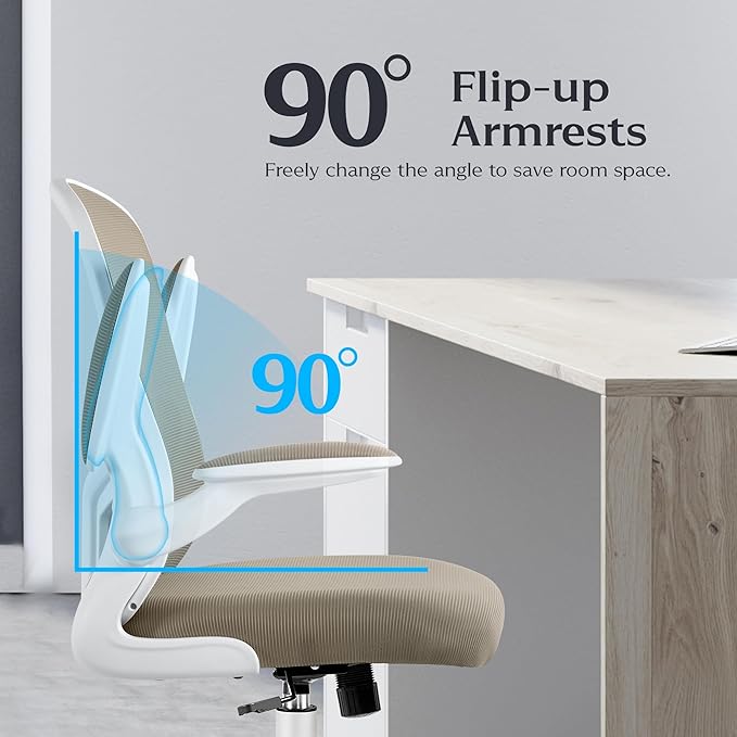 - Flip-up Armrests: The home desk chair with 90° Adjustable flip-up arms can place the chair under the desk to save space. Suitable for office, bedroom, study room and living room