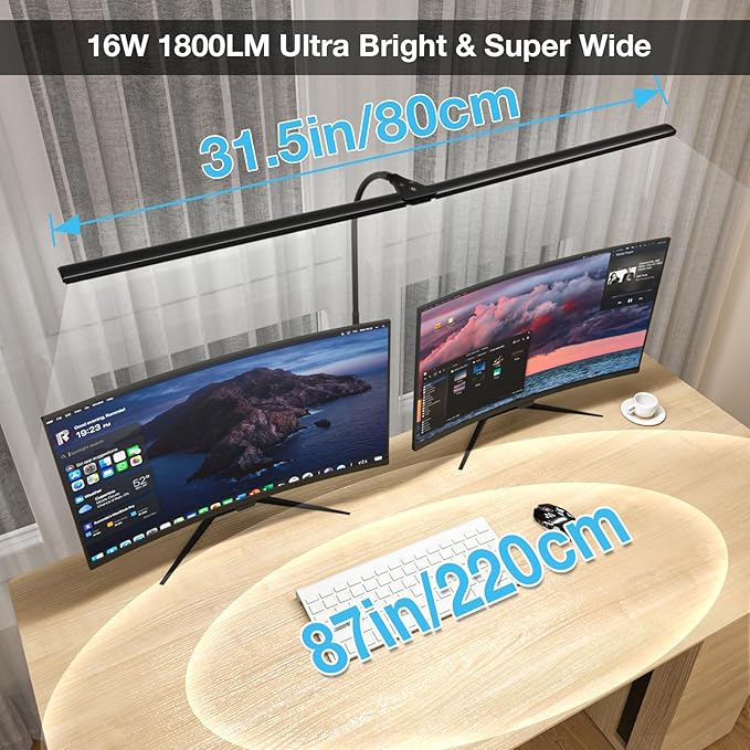 - 360° Flexible: led monitor lamp can be easily adjusted 360° to avoid direct light on your eyes and reduce eye fatigue.The maximum working height can reach 27 inch overhead with 100 inch lighting area. Perfect for drawing, sewing, crafting, architect, etc