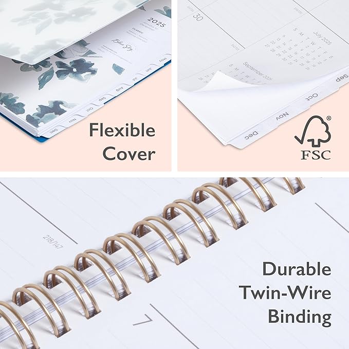 Blue Sky 2025 Weekly and Monthly Planner Calendar, January 2025 - December 2025, 8.5" x 11", Flexible Frosted Cover, Laminated Tabs, Wirebound, Storage Pocket, Bakah Blue