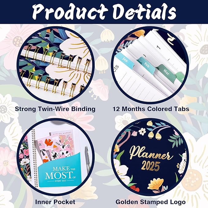 - Sturdy& Stylish - Strong twin-wire binding for 2025 planner is sturdy and gives you the flexibility to turn pages, and it folds 360 degrees to avoid crushing it while writing. Moreover, high quality floral cover for the planner, easy to curl and store.