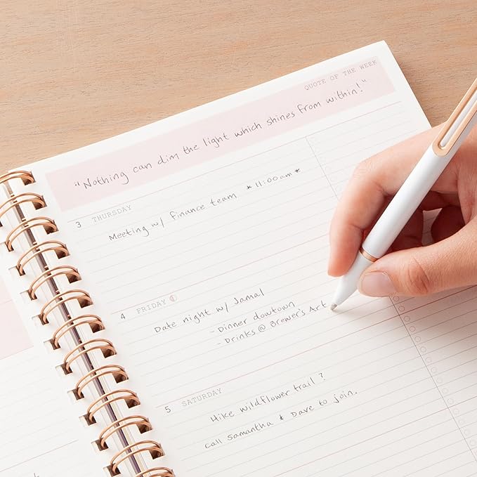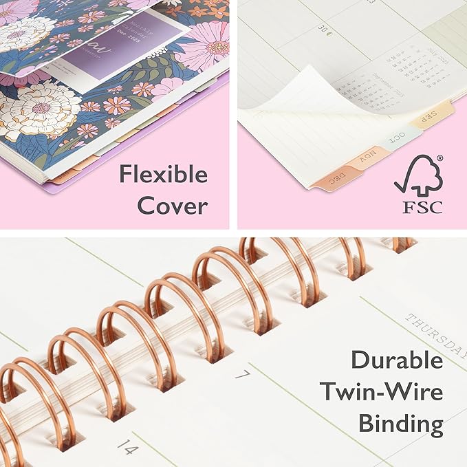 - Created with responsibly sourced paper, soy-based ink and constructed with rose gold wire binding, an interior pocket, and tabs that are all recyclable, this planner is made with the world in mind