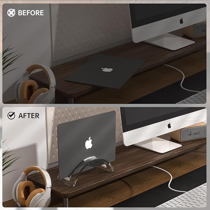 - Space-Saving Design: This acrylic desk stand helps you enjoy a cleaner, more organized workspace at home or office, and enhancing air circulation and expediting heat dissipation.