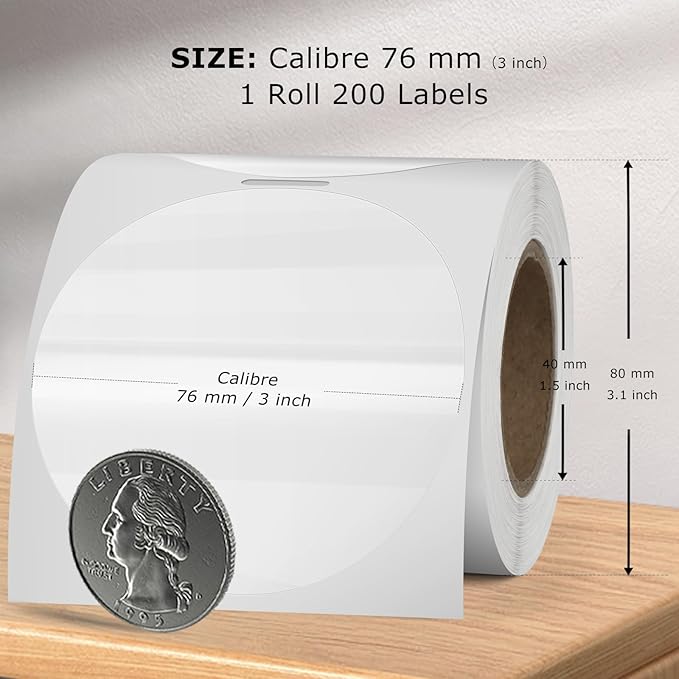 - Package: Print size of FINDAT transparent round thermal stickers is 3" with 200 pieces per roll. Suitable for most direct thermal printers without requiring pigments such as ink or ribbons.