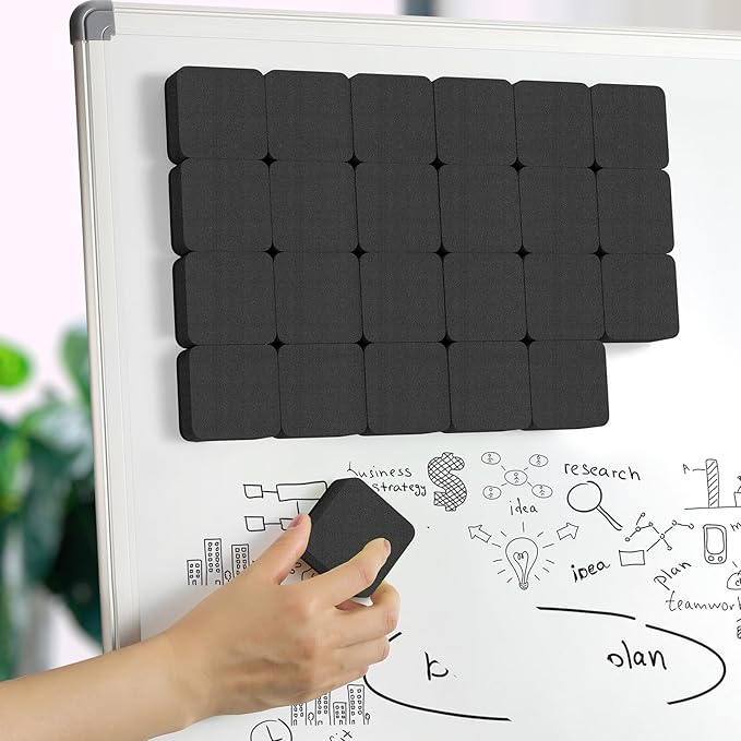 - COMPACT SIZE & PRACTICAL DESIGN: Measuring 2 x 2 x 0.6 inches, the whiteboard erasers fit comfortably in your hand, offering precise control for smooth and efficient erasing. This 24-pack set, all in a neat black color, ensures a consistent and organized appearance for any environment