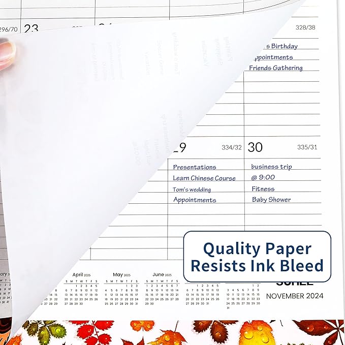 - Non-bleeding Paper: The paper of wall calendar 2025 has a unique design and looks motivated. Writing with a pen on the paper is smooth without ink jamming or bleeding through. When the month has been recorded the pages can be turned along the white wire without tearing them out.