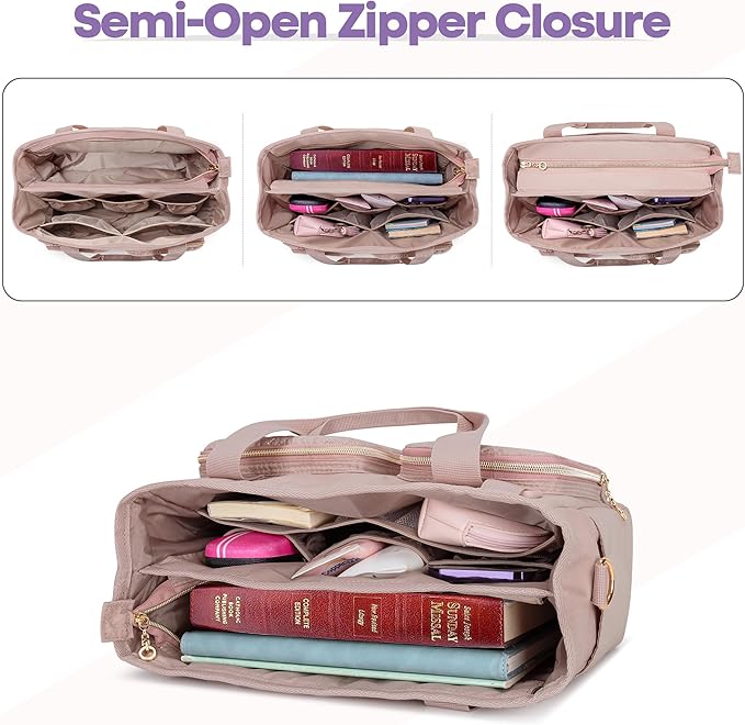 - SMART INTERNAL DESIGN: 2 Main sections, the zippered main compartment for your important items is large and safe enough to hold your bible books, journal notebooks, and iPad. The open design main compartment built-in multiple pockets to keep planners, and other personal items, ensuring everything stays organized and easy to find