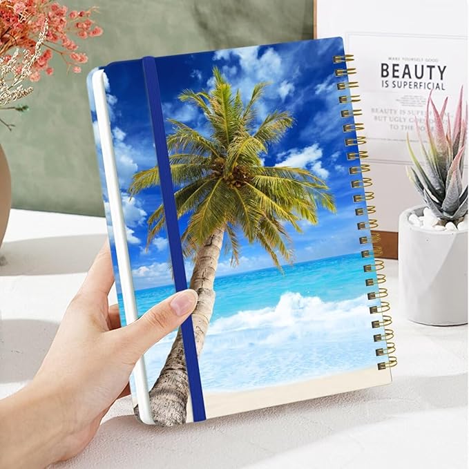 Spiral Notebook - A5 Spiral Notebooks, 8.3'' × 5.8'', 160 Pages, Aesthetic Journaling Notebooks for Women, College Lined Notebook with Elastic Closure, Back Pocket, for School Office, Tree