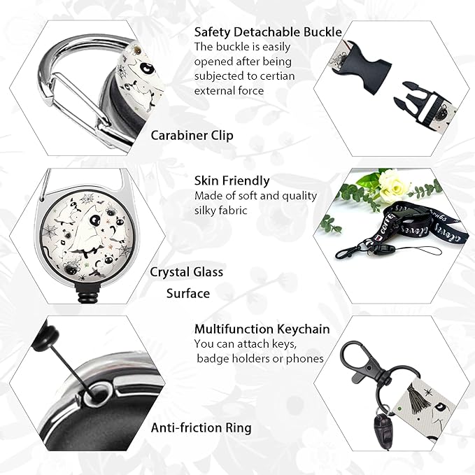 - Halloween Atmosphere: Cute spooky lanyard with id holder combines with mysterious halloween ambiance about bat, broom, cat, spider, etc, adding mystery and whimsy to your ID card during halloween. The spooky black cats play the role of ghosts, bring joy to your Halloween Party