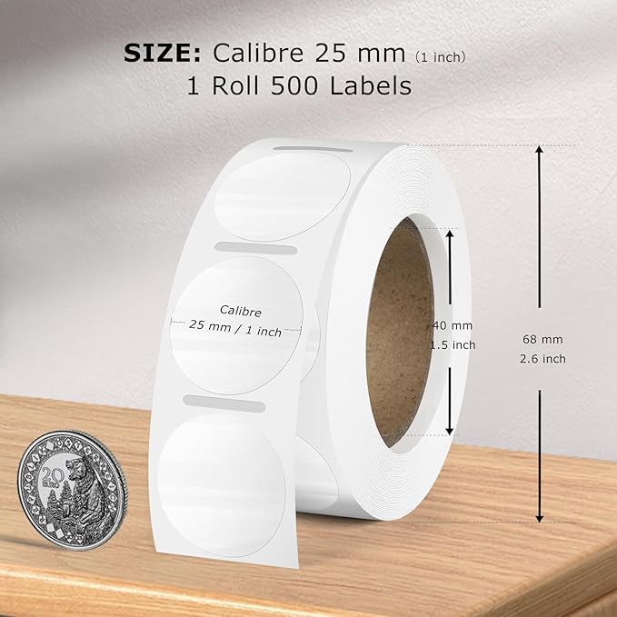 - Package: Print size of FINDAT transparent round thermal stickers is 1" with 500 pieces per roll. Suitable for most direct thermal printers without requiring pigments such as ink or ribbons.
