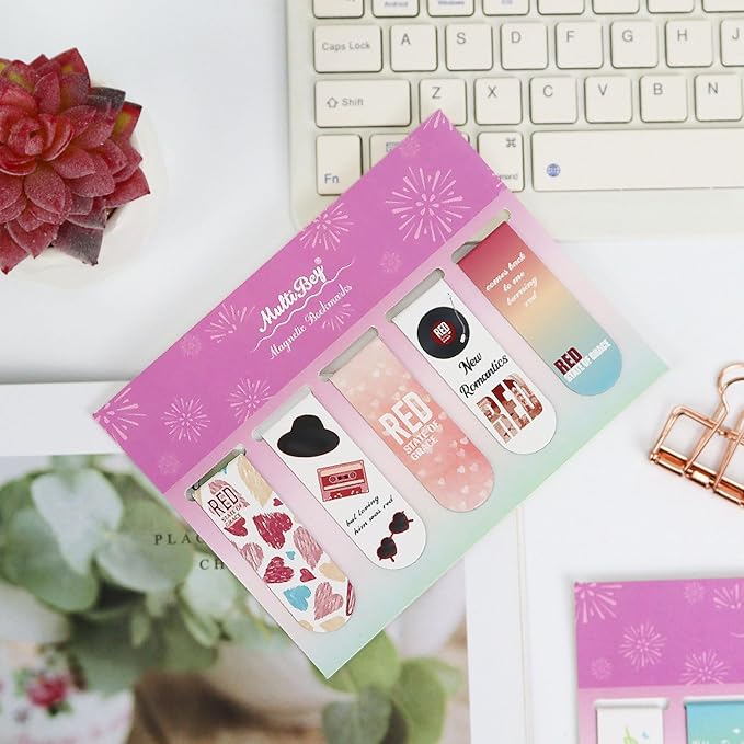 10Pcs Magnetic Bookmarks T-S Colorful Bookmarks Page Markers for Fans Readers, Women, Book Lovers, Students Teachers, Funny Office Supplies Stationery Gifts Used in Office, School, Home (Red & Green)