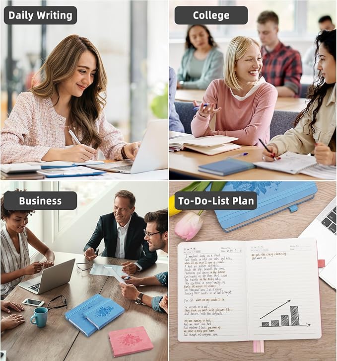 - 【Hardcover Leather&Elegant Design】This lined notebook features a high-quality faux leather cover. The gorgeous "FLOWER" pattern provides a premium look and comfortable feel; The hardcover better protects the pages, combined with sturdy binding, giving you a high-quality writing experience.