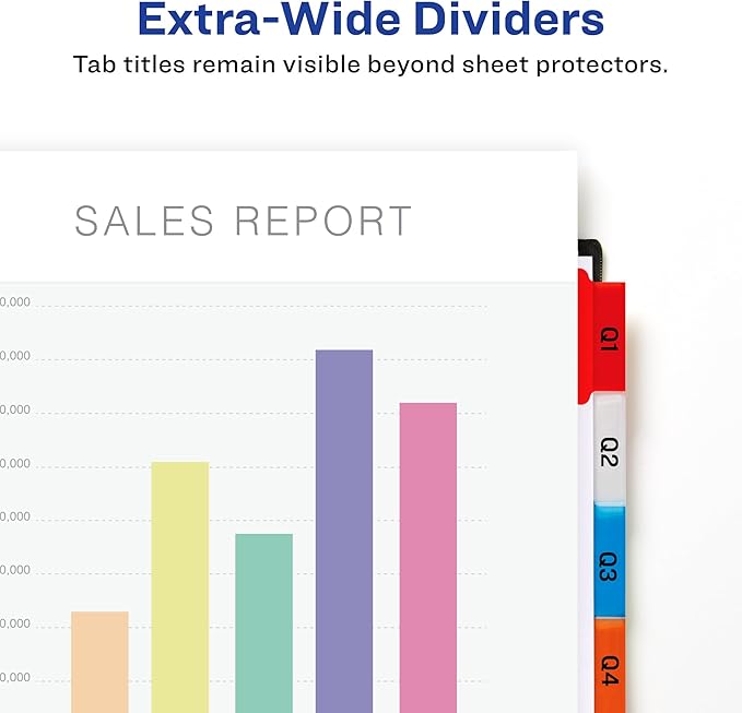 - Dividers extend beyond sheet protectors so you can access sections easily