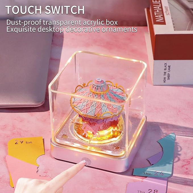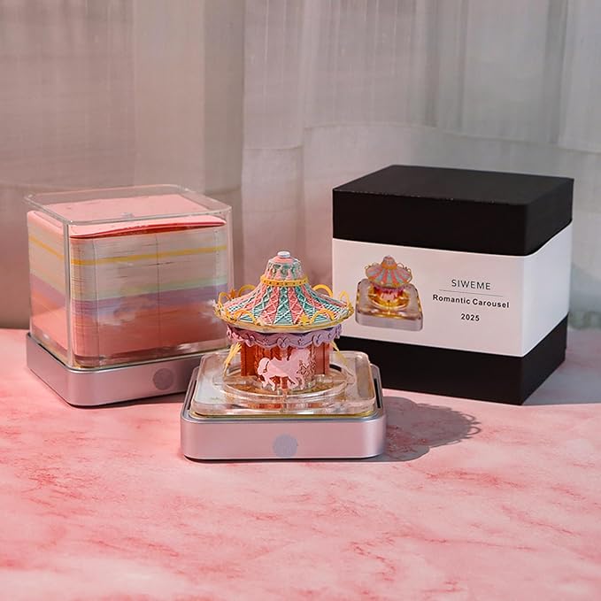 Time Piece Calendar,3D Art Calendar Memo Pad 2025 Creative Desk Calendar with Light,Carousel Rip Away Paper Carving 3D Memo Pad Art Notepad Christmas Gift