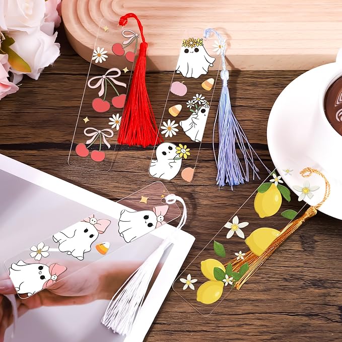 - UV DTF Wraps for Bookmark: You will receive 16 sheets of fruit themed uv dtf transfer stickers, acrylic bookmarks are not included. Each sheet has a different pattern, including ghost, butterfly, strawberry, lemon, flower, mushroom, bee, disco. You can use these cute uv dtf transfer stickers on blank acrylic bookmarks