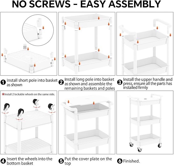 - WHAT YOU GET: The steehoom 3-tier utility rolling cart offers 3 basket for storage. Also it comes with a lid table top. This trolley can be moved to wherever you need it. Use it as extra storage for all your kitchen utensils, desk accessories or for gloves, keys and mobile phones.