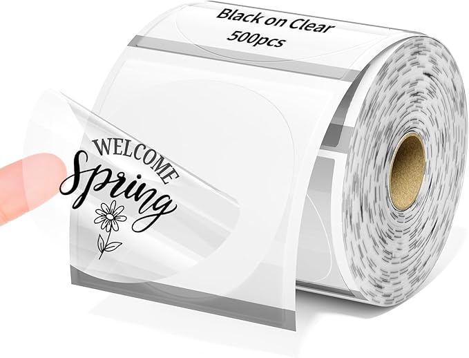 Phomemo 2” Circle Thermal Label, Self-Adhesive Round Sticker Labels, Circular Direct Thermal Printer Labels for Phomemo 241bt, D520BT, 344WF Label Printer, 500 Labels/Roll, Transparent