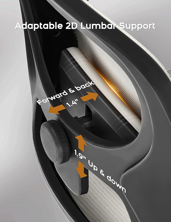 - Adaptable 2D Lumbar Support: Designed with an ergonomic 2D lumbar support, you can adjust the support strength from front to rear, and adjust the height to provide optimal support for your spine. The ergonomic lumbar support conforms to your spine's natural curve, ensuring comfort during long-term work.