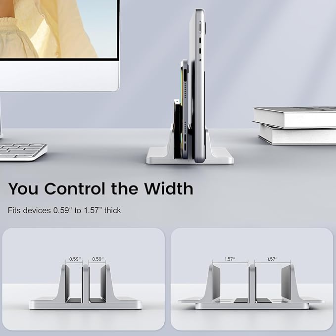 - Adjustable Width for Compatibility: This vertical stand dock comes with an Allen wrench, allowing you to adjust the width to fit your laptop size perfectly! It's compatible even if your tablet has a protective case! The maximum width gap is 1.57 inches