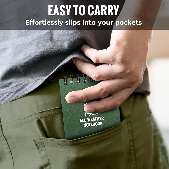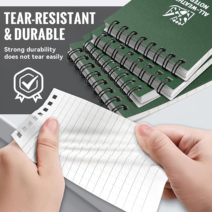 - Waterproof Notepad: No need to worry about your notes getting ruined by unexpected weather. Our waterproof notepad can be crafted to withstand water, sweat, grease, mud, and even laundry mishaps, your notes will remain safe and legible, allowing you to capture ideas, inspirations and memories without worry