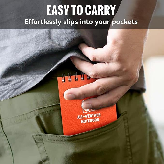 - Waterproof Notepad: No need to worry about your notes getting ruined by unexpected weather. Our waterproof notepad can be crafted to withstand water, sweat, grease, mud, and even laundry mishaps, your notes will remain safe and legible, allowing you to capture ideas, inspirations and memories without worry
