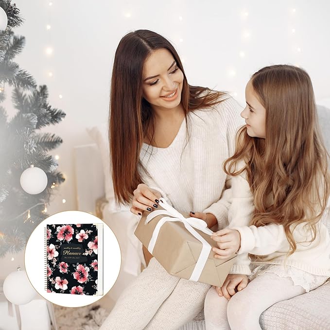 - Bouns Features - Beautiful golden corner protector, 2 detachable stickers, can be made monthly tabs or important page number mark, a pocket for storing papers, receipts, and documents. Crafted with high-quality paper and attention to detail, our large spiral bound planner features a durable cover, thick pages, and a lay-flat binding, ensuring it lasts the entire year
