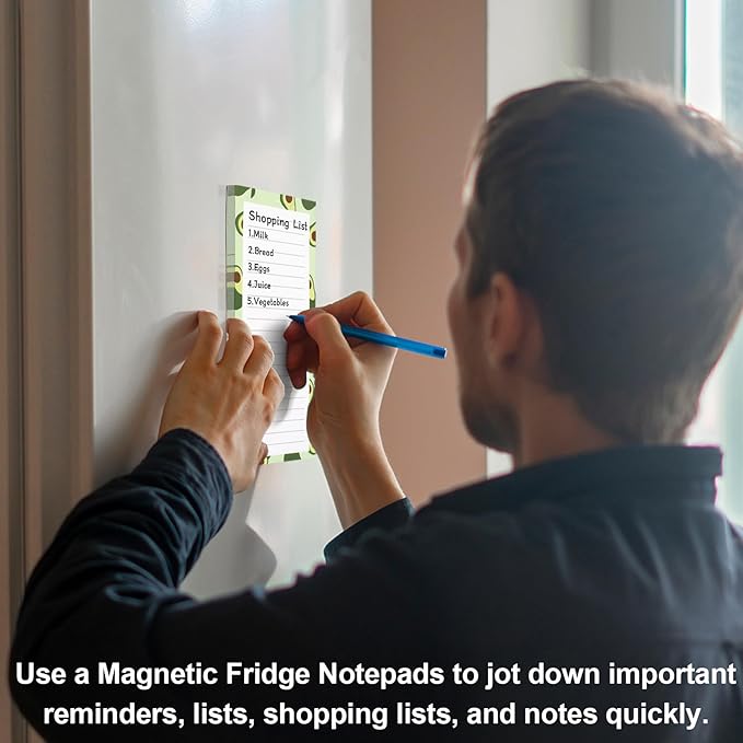 - Save time and trouble: These 9 Grocery List Magnet Pads for Fridge have plenty of space for writing and can be ripped off when filled. Magnetic Grocery List Pad for Fridge can be placed in the kitchen refrigerator, garage, filing cabinet, or gym locker. Jot down important notes and reminders, and always remember the important things.