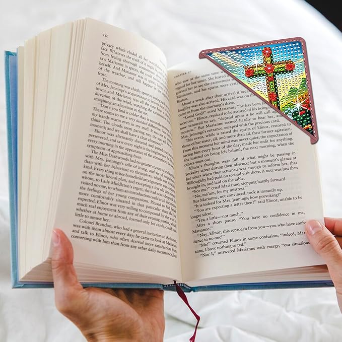 Diamond Art Painting Bookmarks,8Pcs DIY Cute Diamond Art Kits for Adults, Corner Bookmarks Small Crafts Kit Gifts for Women Book Lovers (Cross)