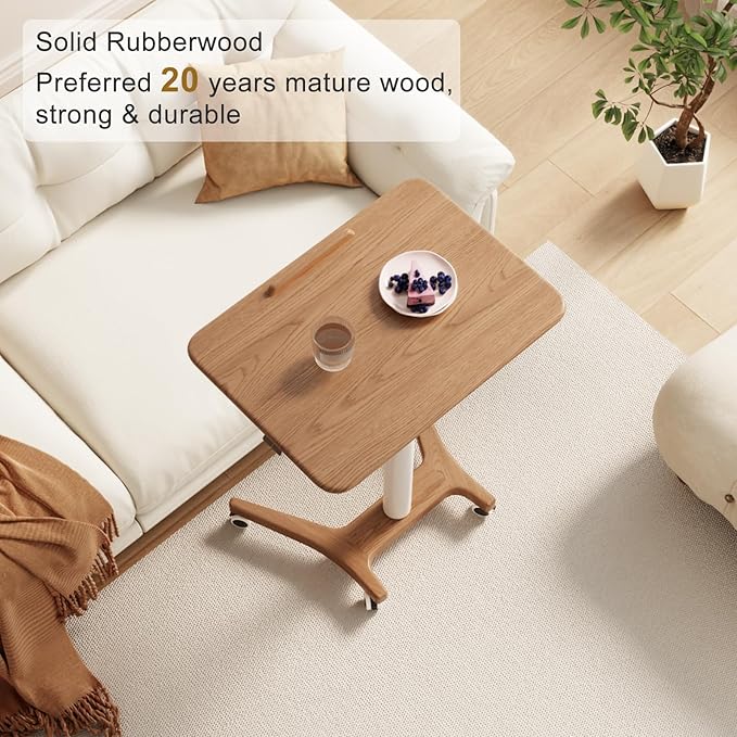 Rolling Standing Desk,Rolling Desk Adjustable Height with Wheels Rolling Desk for Home Office, Bedroom,Couch(Walnut)