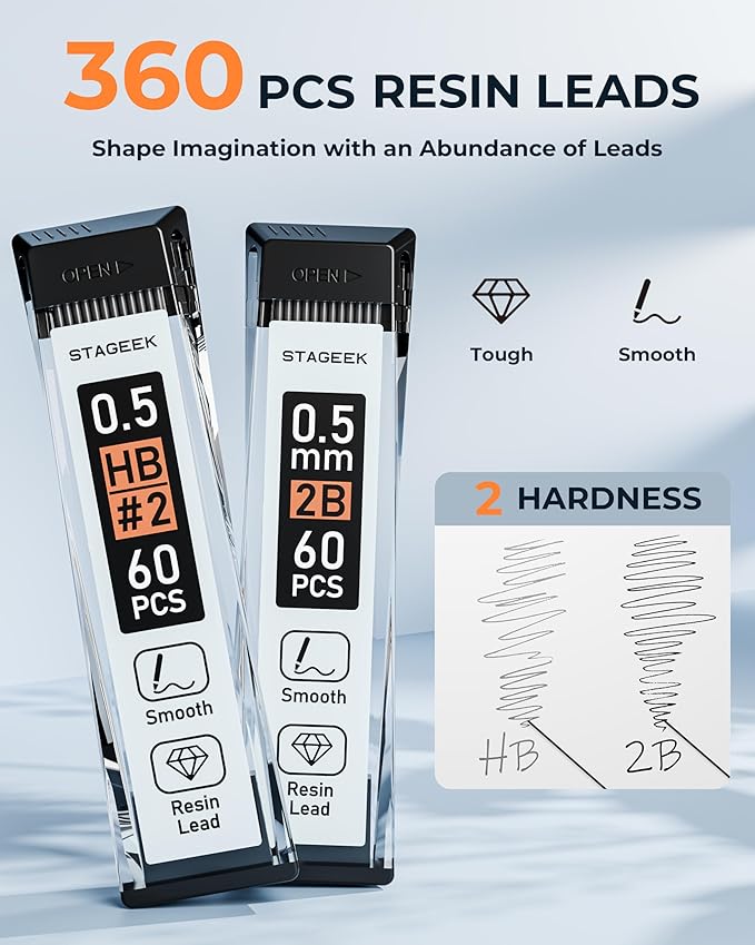 - HB & 2B Hardness: The HB 0.5mm lead refills are perfect for everyday writing, offering balanced hardness. The 2B lead is ideal for fine details and sketching. These leads are durable, break-resistant, and produce minimal dust, ensuring smooth, effortless writing.