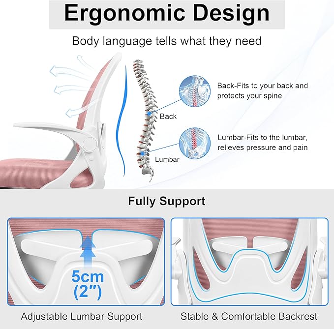 - Ergonomic Office Chair: This chair is designed with a curved backrest that contours to your body shape, providing optimal support. The adjustable lumbar support reduces spine strain and alleviates back pain during long work hours