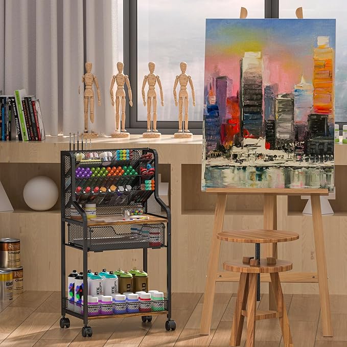 - 【Metal & Wood & Rim】This craft organizer is made of durable metal and wood. The bottom has a rim, When moving the rolling carts with wheels, the paints will not fall. The metal and wood of the 3 tier rolling cart gives the rolling storage cart excellent load bearing and stability.