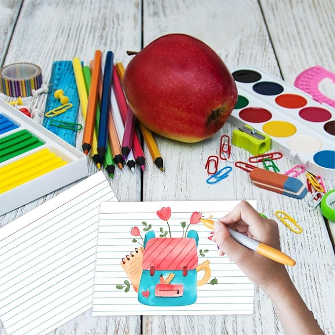 - CLEAR PRINTING: With clear, horizontal lines and well-spaced rows, these index cards ensure your writing stays neat and legible. The smooth surface allows your pen to glide effortlessly, while the blank front side is perfect for drawings or messages. Express yourself by adding personal touches to the blank space—write encouraging words or create small artwork.