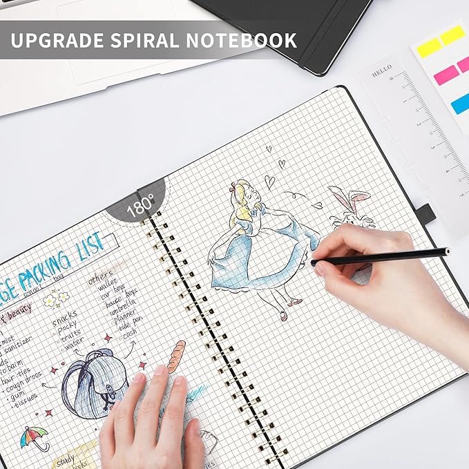 - HARDCOVER LEATHER JOURNAL: This spiral notebook features a durable, waterproof vegan leather cover that protects your notes from damage. The double-wire binding allows for easy folding and 180° lays flat for convenient writing