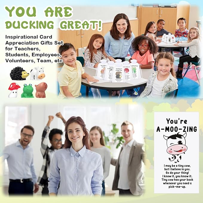 - Inspirational and Gratitude Theme: our group gifts for coworkers are designed in 5 different styles, 5 different resin accessories with different cards, including mushroom, cow hedgehog, capybara and frog, with funny pun quotes, delicate and lovely, to express your gratitude and encouragement and bring warmth to others