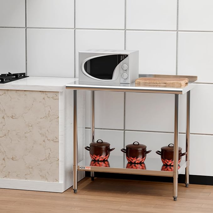 Stainless Steel Table for Prep & Work with Blacksplash and Adjustable Undershelf 36 x 24 inches,3ft, Heavy Duty Commercial Kitchen Table for Restaurant, Home, Hotel, Kitchen Prep Tables
