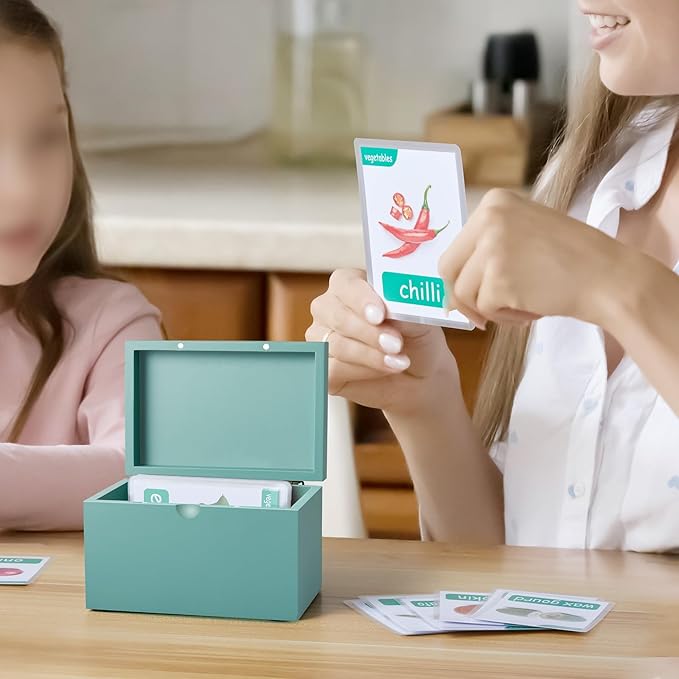 DRASTAR Index Card Holder, 3x5 Index Card Box, Wooden Index Card Organizer with 45 Index Card Dividers, Flashcard Notecard Holders for Home Office, Teal