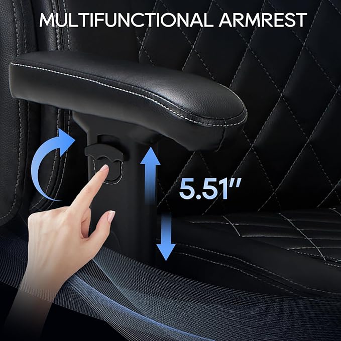 - PADDED BACKREST & ARMRESTS: The executive office chair comes with 4.33" thick backrest and adjustable padded armresrs, providing exceptional support and reducing strain on your arms and shoulders. This thoughtful and ergonomics design minimizes fatigue, ensuring a more comfortable work experience.