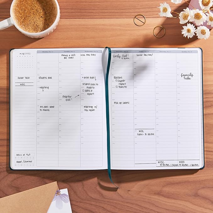 - HOURLY LAYOUT: Includes dated monthly calendars and hourly weekly planning pages, suitable for detailed scheduling.