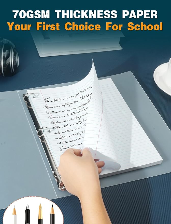 - 【DECENT FILLER PAPER】- Binder paper wide ruled is made 70 GSM thick paper, these filler paper sheets can be written smoothly to prevent ink bleeding. Strong glue binding on the left, combine all the sheets together securely, allowing you to remove pages effortlessly and easily without damaging the sheet. Hold the remove sheets to the 3-ring binder. Can be used for school, college, home, office, work, etc. whatever you can imagine