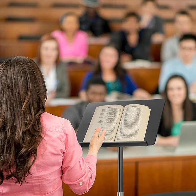 - 【Spacious & Ergonomic Design】The 16x12-inch tabletop offers generous space to accommodate notes, laptops, or other presentation essentials, making it ideal for speeches, lectures, and events. With a 12x10-inch metal base and a height of 42.5 inches, this podium promotes a commanding presence while maintaining balance and stability.