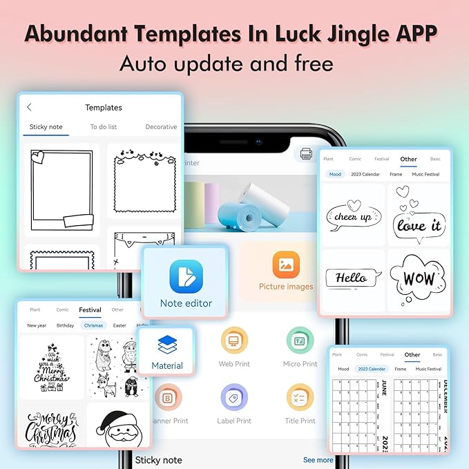 - Inkless Sticker Printer Versatile Applications: Our app has a variety of materials, including characters, comics, tag decorations, flowers, festivals, and more. You can print pictures and photos from your phone, as well as make notes, hand account, memos, meeting minutes, work plans, shopping lists,anatomical diagrams, and tables. Suitable for students and those who enjoy DIY.