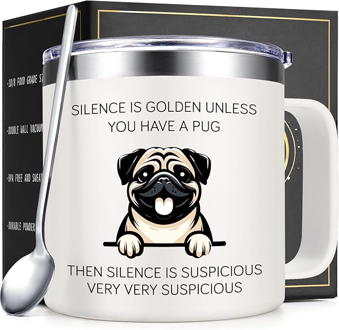 - Wonderful Pug Gifts: Are you looking for enchanting and thoughtful pug gifts? Look no further. Our “Silence is Golden Unless You Have A Pug” 14oz coffee mug serves as a unique pug gift for pug lovers, suitable for occasions like Birthday, Christmas and Thanksgiving