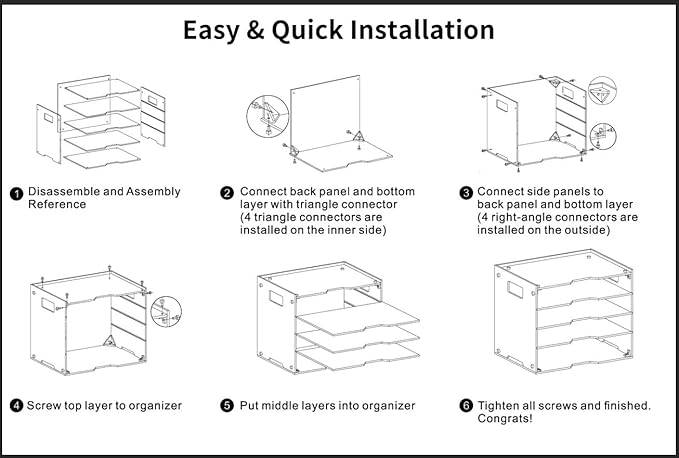 - Easy to install: The file folder organizer can be easily disassembled and folded by screwdriver for convenient storage. Make the most out of your time and space (Package comes with a product assembly step diagram, please feel free to contact us if you encounter any problems.)