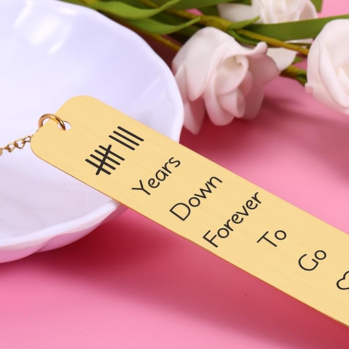 - Bronze Gift for 8 year anniversary - Still hunting a 8-year anniversary gift? This happy anniversary bookmark is well designed and clearly engraved with: "8 years down,forever to go". Sentimental anniversary present for him her,8 year anniversary marriage gifts,wedding anniversary gif for husband wife,happy anniversary for boyfriend girlfriend,engagement gifts for couples.Great gift idea for girlfriend,boyfriend,wife,husband,hubby,couple,soulmate,or someone you loved.