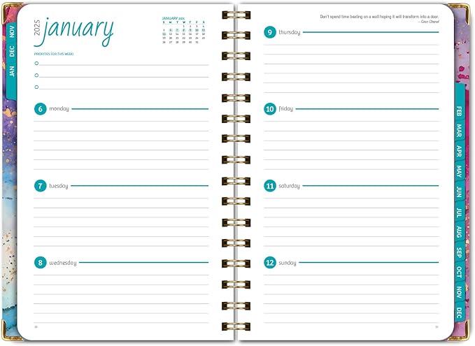 - FEATURES: 2 Page Monthly Spreads followed by 2 Page Weekly Spreads