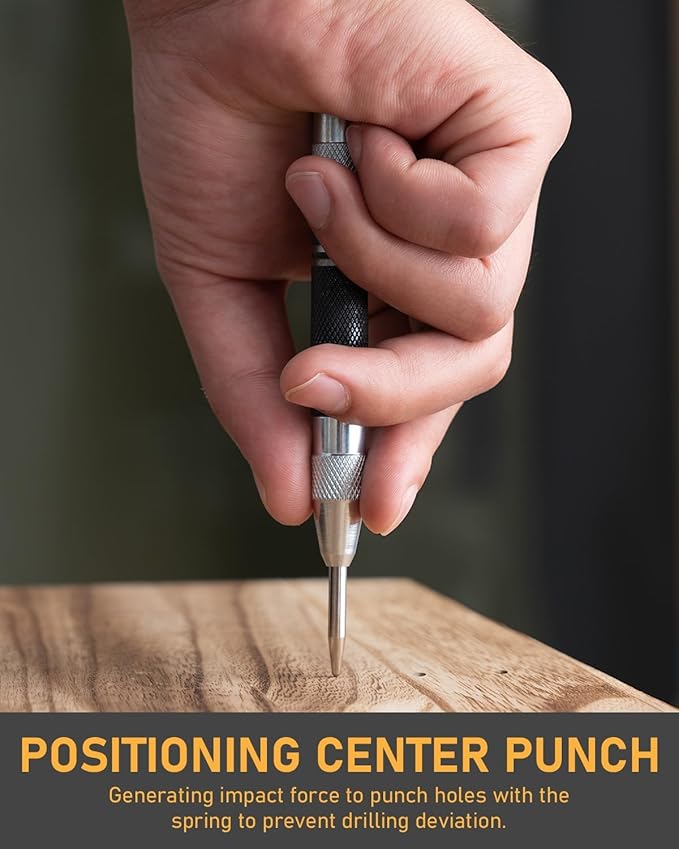 - [ Multi-use Carpenter Tool: ] This carpenter pencil set includes a metal carbide scribe tool and a positioning center punch, perfect for precise engraving on tough surfaces such as metal, tile, glass, ceramics, and wood.A spring loaded center punch can be operated with one hand and accurately mark a centering spot for drilling holes. Additionally, paired with a 4B eraser for easy error correction, this set is ideal for fine work.